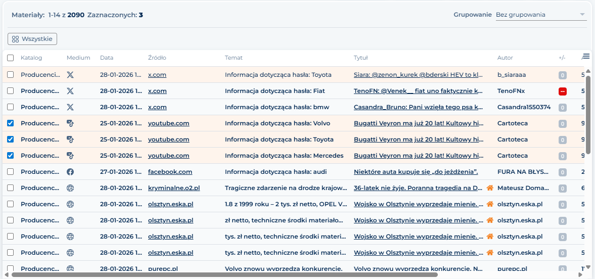 W tym kroku to Ty decydujesz o kolejności przesyłanych materiałów. Możesz je grupować po katalogach, tematach, mediach. Dodatkowo możesz je sortować rosnąco lub malejąco według wskaźników IMM.